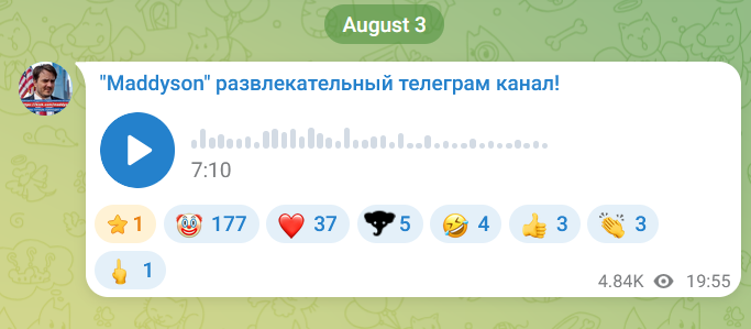 ⚡Обсуждаем Илюху Мэда и его друзей.Калнорма нерелейтед дерьмо, не имеет никакого отношения к треду, видите посты с этой хуйней репортите по следующим причинам : вайп, нерелейтед, шитпостинг, разжигание срача, обход бана Телеграм: https://t.me/maddysontg Twitch: https://www.twitch.tv/honeymad Goodgame: https://goodgame.ru/HoneyMad Основной ютуб: http://youtube.com/user/madgostream/videos Ютуб с хайлатами: http://youtube.com/@MadHightlights VK Play: http://vkplay.live/maddyson Kick: https://kick.com/maddyson Прошлый перекат: >>24934414 (OP)