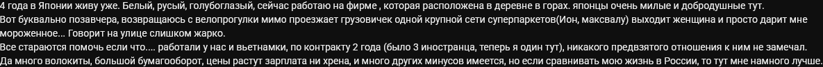 Оля Вуду жила 2 года там (единичный опыт никак не передаёт массу) буквально 0 дружественнх связей, приглашений поработать и остаться Ну Ринчиха то понятно, ей потусить, хуйни потворить, с такими темами всегда компания найдётся.