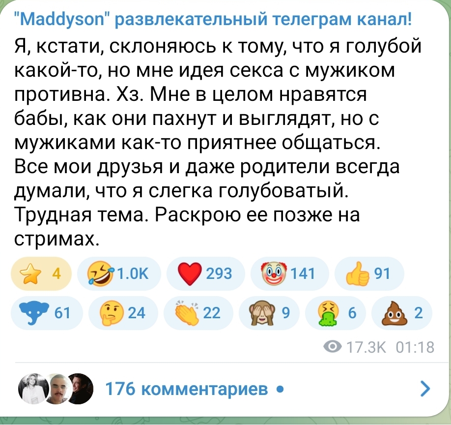 Хаха хуя вы тут насрали симпохуйни, а я зашел чекнуть больного шизохуйтерка а он спит кеки Заметьте сколько идет адекватное обсуждение ни одного пидовскукарека от шиза про Дениса и прочий кал) Еще одно доказательство что шизоид тут соло срал все 100+перекатов вахуи