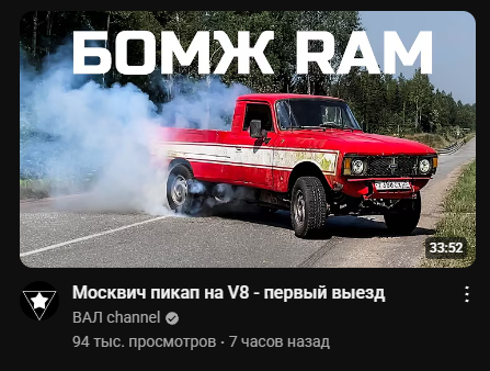 >>24982644 мурка само собой, хенсона, но вал буквально открытие года, ору в голос с его видосов, шевроле эванна просто убила наповал. а права нахуй не нужны, я сдал и лежат пылятся, пешком полезнее ходить но иногда хочется гаражик и поковыряться в восьмерочке