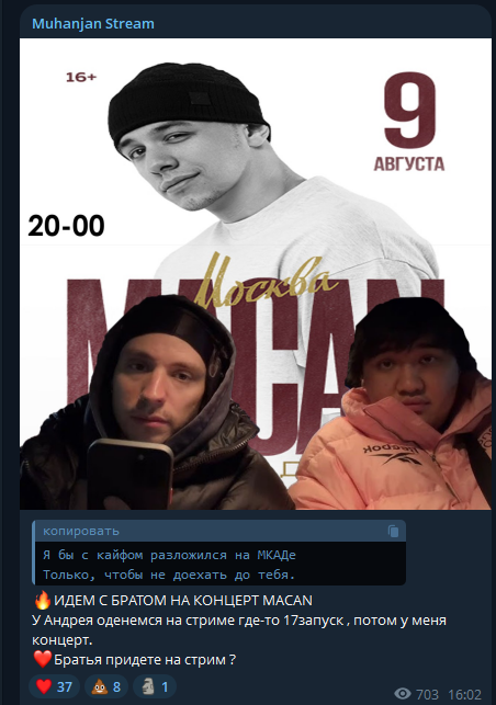 >>24987151 На 2 года и 7 месяцев, я уезжал у него были вроде 1000-1500 каждый стрим, тут приехал смотрю на 250-350 зрителей сидит давит из себя последние эмоции и максимально стал токсичный, противный и уебищный как внешне так и морально, я даже отписался от него, чисто опущенный черт какой-то