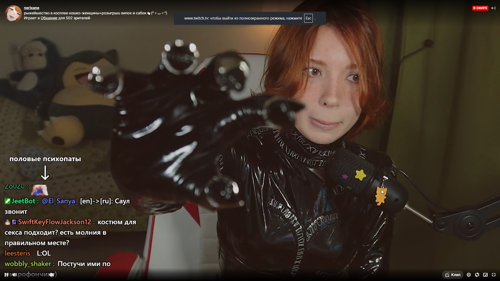 >>24993228 (OP) Ну ребят!. Ну не заходите к Рыжопичу на стрим. Я вон тоже рыжий парик надела и сиськи вывалила. Ну останьтесь на моем канале twitch.tv/unuasha Ну что Вам там латексный костюм, ну? Я весь стрим наклоняюсь в вебкамеру смотрю. Вам что? этого МАЛО, спермобаки ууу?
