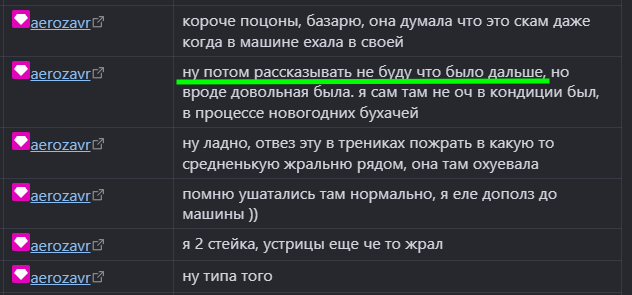 >>24994678 А смысл ему продолжать заносить, тем более по крупному. Близких отношений уже не будет. Он и сейчас уже даже не во френдзоне. Те же Нойзи или Димочка сильно ближе и дороже для Женечки, чем Заврик.Не говорю уже о Руслане с которым явная лавстори или как минимум близкая дружба.