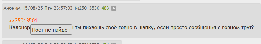 >>25013501 Калонормодаун, нахуя ты ты пихаешь своё говно в шапку, если просто сообщения с говном трут?