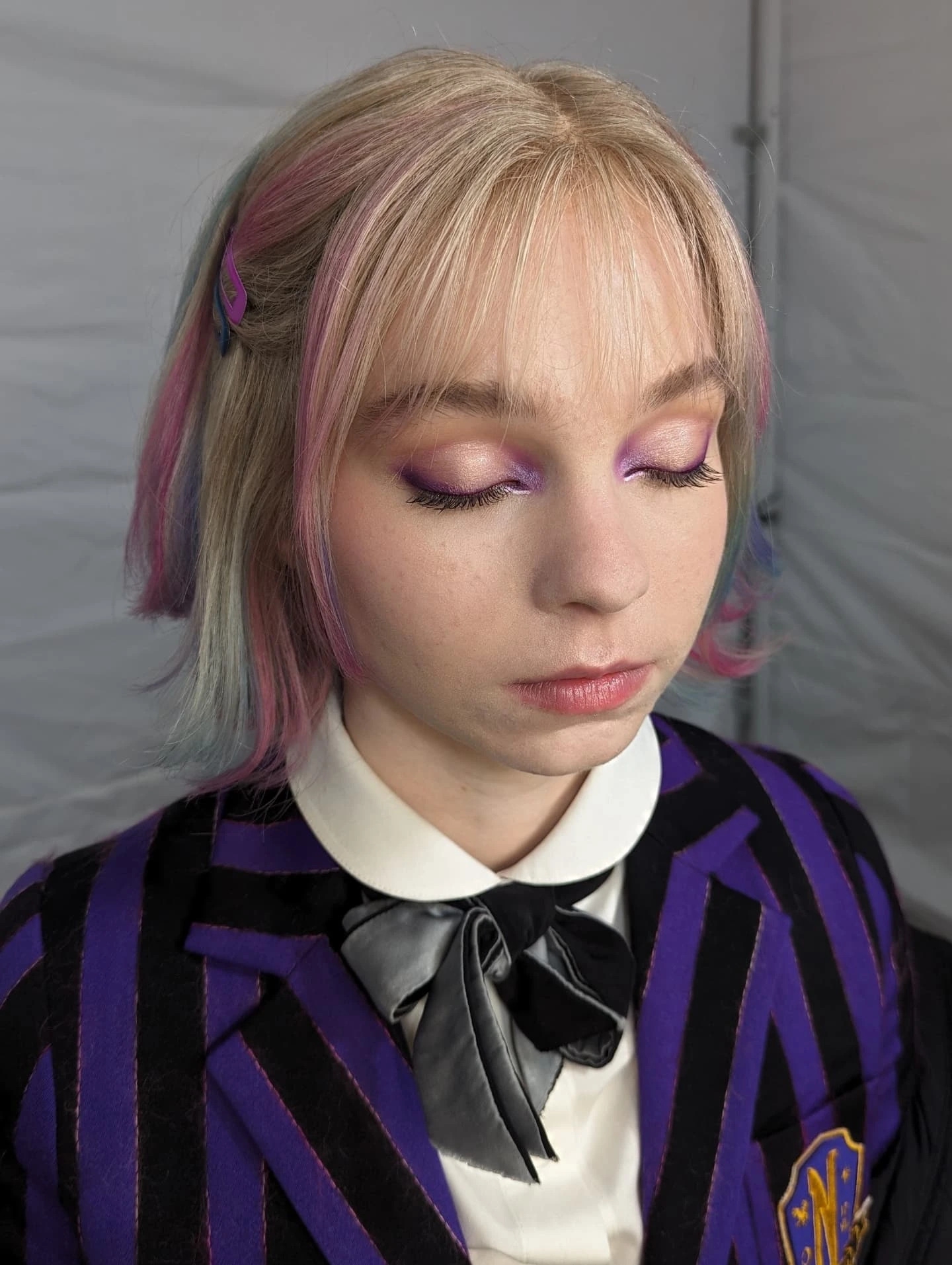 Вы че дауны и настолько очевидную хуйню не выкупили? Энид лесбуха и ревнует венсдей. Радужные волосы это буквально радужные пидораские волосы. Это история о ревности и будущем камингауте в конце сезона скорее всего.
