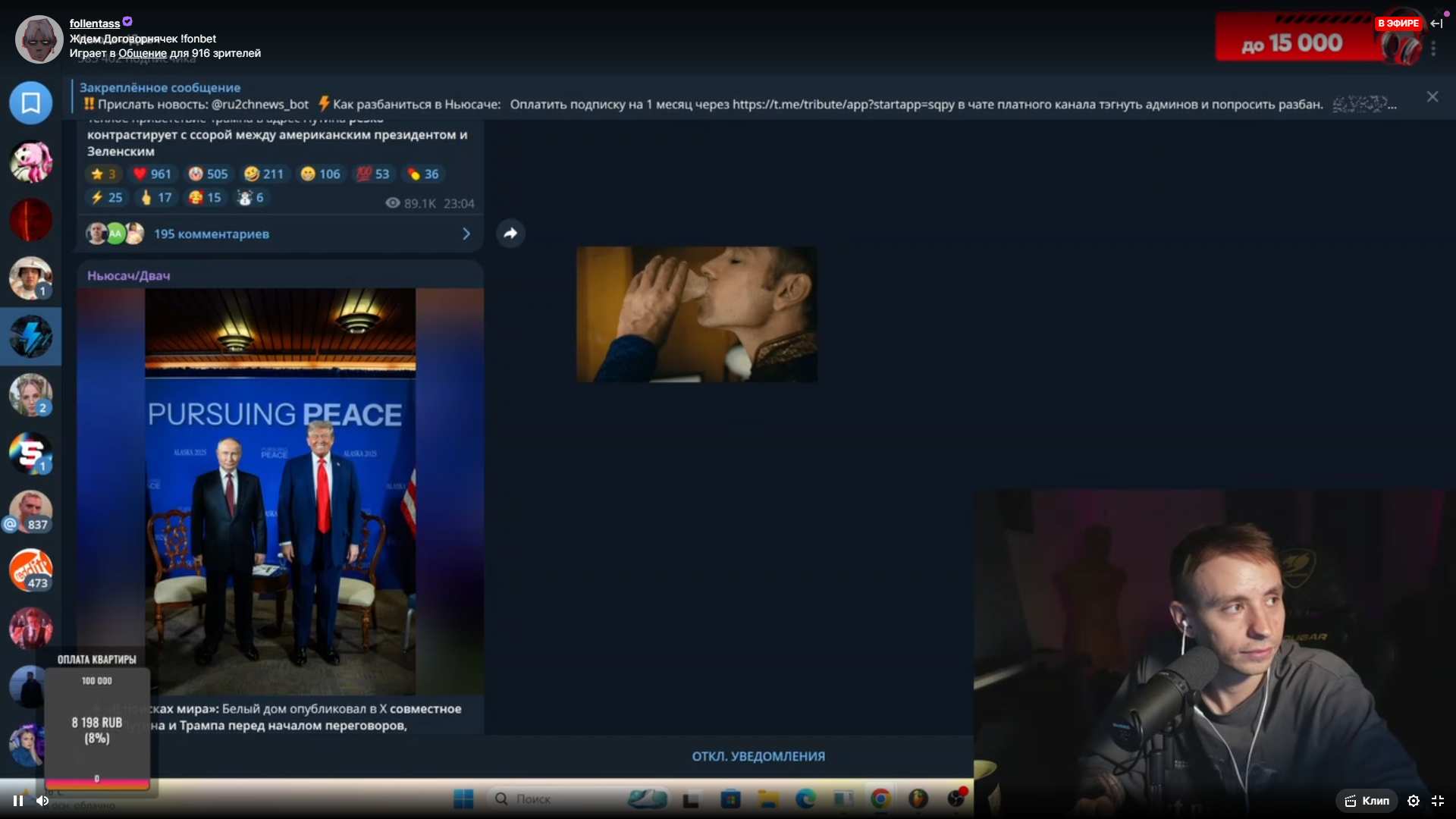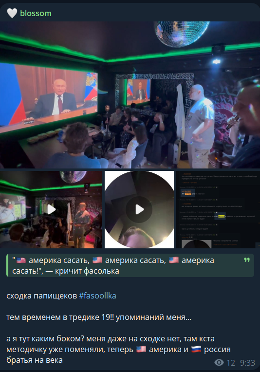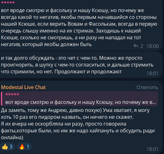 Меня вообще поражает тот факт что тут пару типов пытаются всеми силами не верить что вовощ с чухней ебутся. Если что тут пишет много людей и смешно видеть как пытаются массу людей выставить как мнение одного шиза. Если что я являюсь симпом, да признаю, но мой мозг ещё не сгнил и я помню как ей все эти годы донатят про воваща и она всегда отнекивалась. Но сперва воваща палит сталкер когда он гулял с хиной и остался на ночь, была поездка в Сочи где были стримы со стилом и равшаном, где нам заливали что они просто друзья. А по итогу что? Спустя года - ну да мы пытались сойтись (ебались). Ну и для особо внимательных тут чел срал фотками кровати ватариса с намёком что он дома не ночевал. Может у меня со зрением что-то но после стрима с предложением поесть супчик и следующим стримом складки не поменялись. Я утверждать не берусь свечку не держал, но то что он заходит к ней на потрахушки пару раз в месяц звучит вполне правдападобно.