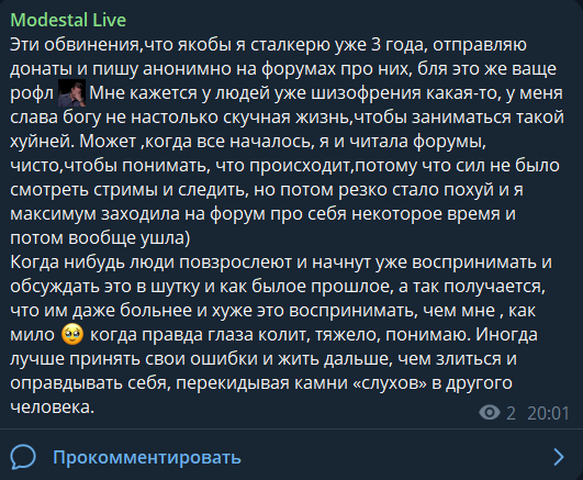 Вот бы полность положить стрим Мразольки-Фашольки,чтобы она не говорила гадости про милую невинную девочку Модестал.Вечером жду не дождусь,когда на вк она подрубит на 20 человек.