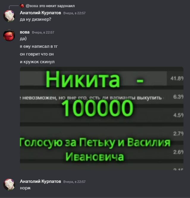 Я правильно понимаю, что вы реально ведетесь на троллинг денисом хамитовым вот уже год? Типа чел так жирно байтит, но вы сидите и бахаете с этого говна как школьники