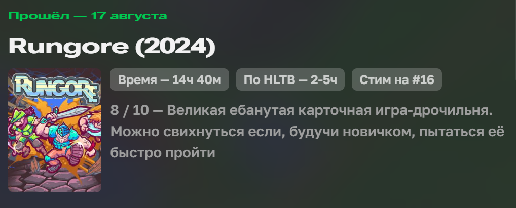 >>25025083 Им попались игры которые проходятся за то же или даже большее время на чем на хлтб. Вот на этой вообще 2.5 часа, но там всего 1 оценка была, по-хорошему её Ласка должен был рероллить.