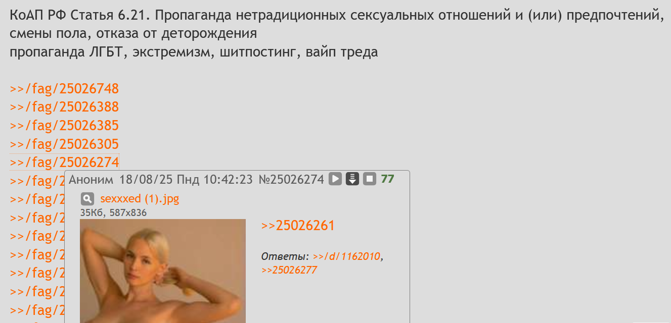 >>25028452 При желании тут можно найти призыв к насилию и экстремизму. Та же чмокобович сидит за абсолютно то же самое. Но это дорогое получается, там симпы дышать боятся даже походу