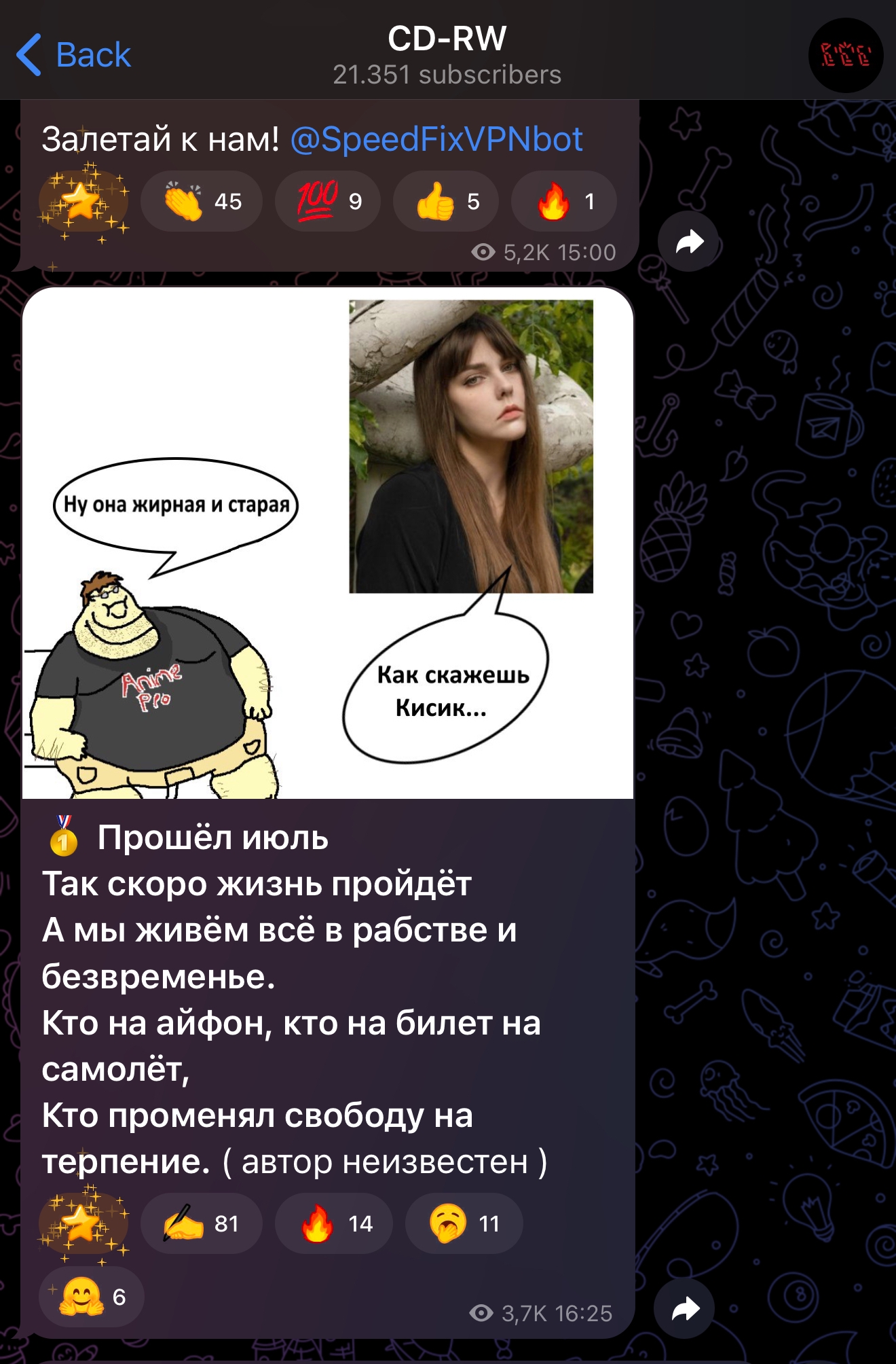 >>25033217 АудиоРВ, просто гиперленивый хуй, материал для которого собирает его же аудитория. И он же ее постоянно троллит и стебёт, так что это в порядке вещей. Подобные картинки и комменты с подьебами - это для дегрода норма, его "кисики" (из активных) такие же терпилы, но справедливости ради часть не затерпела, и начала весь этот движ с деаноном, травлей и тд...а у пузлика таких и нет, одни жополизы...