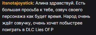 Щас Чмодье стримит Смуту и там удалили озвучку жирной, раньше она озвучивала Ирену, а теперь ее озвучки нет. Лол. Кек. Обиделись на нее разрабы. Не похвалила игру даже за бабки.
