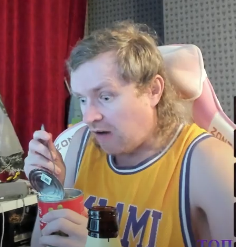 >>25032365 41летнего безмозглого тунеядца никуда уже не возьмут, да и не охота на работку то, поэтому он будет стримить ведь находятся дауны на донатерах, ему пока везёт в этом плане