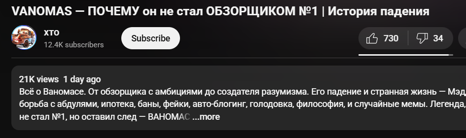 >>25035180 Даже эта цифра в 178к — накрученная. Бомжу, например, в январе 2024 с нихуя 3к подписчиков накинуло. Можно подумать, что он в этом месяце какой-то бэнгер выпустил, что все толпой божелаи на его канал, но нихуя, в этот месяц вообще видосов не было. 2022-м году ему так же накрутили.