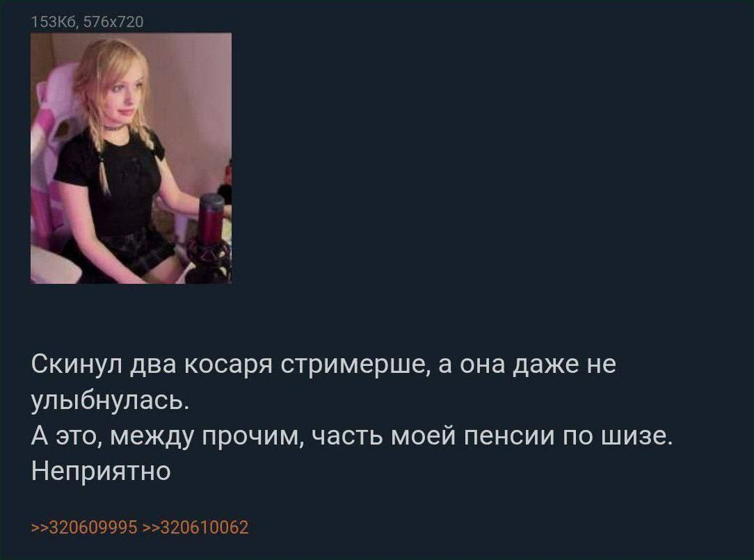 >>25035065 >Казлеха прилипла к бомжу и пиарилась уводя его донатеров пока он ее не перебанил и на хуй не послал... >Она пыталась пиявится к многим блогерам но все ее слали на хуй