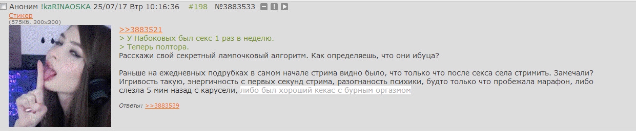 >Ты забыл что она стримерша и из любой хуйни если можно надо делать актив Хотя какой контент-мейкер такой и контент, хули я удивляюсь