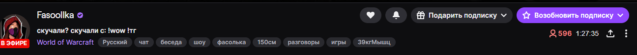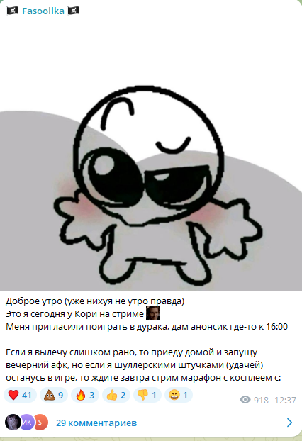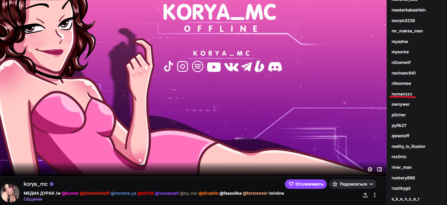 Короче, сегодня без стрима, разумеется почему дневной не сделала как хотела не сказала. Вообще чет прям тухло на канале. Сначала скучные ирл с Калининграда, потом 2 стрима, один из них реклама вов. Сегодня тоже скип стрим, завтра скучный марафон по фильмам марвел, которые она недавно в соло смотрела. В понедельник опять ирл реклама.