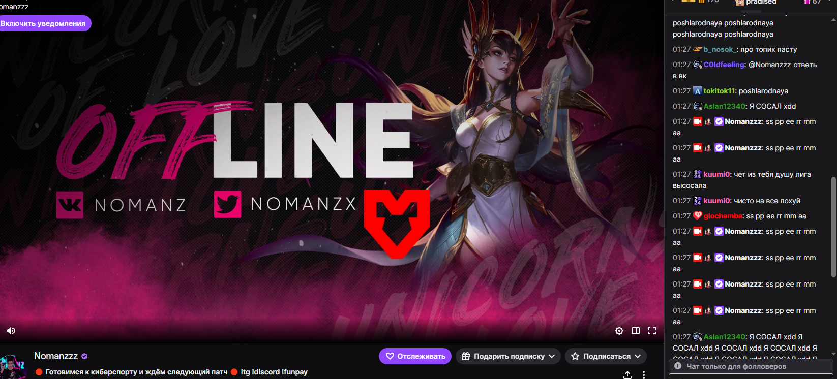 Аахахха чуханка вышла из дс собиралась идти спать но ждала овоща когда тот оффнет. Но тот решил потестить комп оффнул стрим и позвал чуханку на одну катку. Она разумеется пошла хотя собиралась спать))