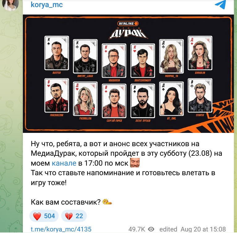 >>25053154 поч чуханка делает вид что её только сегодня пригласили, ни объяв в тг никакой инфы. Коря ещё 20 авгуса пост делала с датой и временем, вчера на прогон ездила.