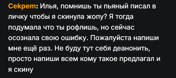 >>25050294 Ты реально думаешь что из этой вспотевшей жирной жопой пахнет розами? Ты хоть представляешь какой тухлятиной там кресло пахнет в которой Денис стримит и пердит туда постоянно и трётся яйцами? Это же не женщина, а поехавший на голову пидарас, какие крема нах ты чо
