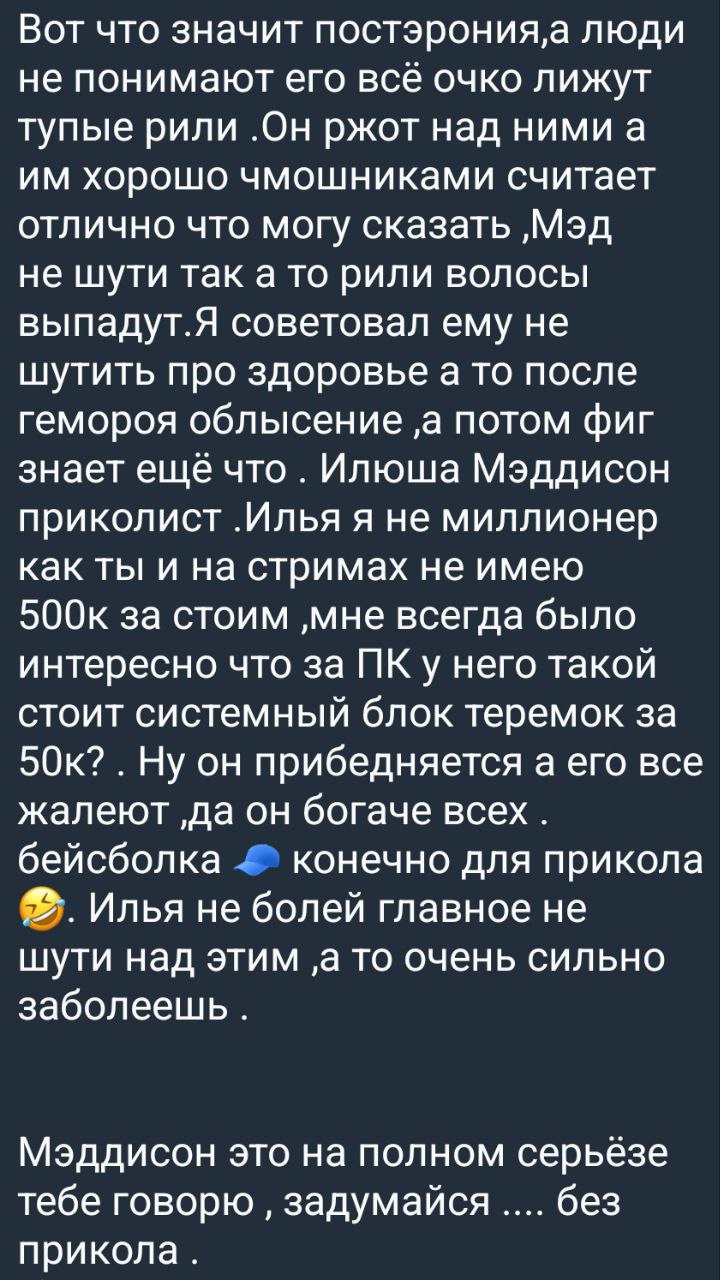 >>25050154 у него в коментах под рилсами кстати куча нормисов отцов двух ангелочков, которые выписывают полнейшую хуйню пошлую. это многое говорит о нашем обществе.