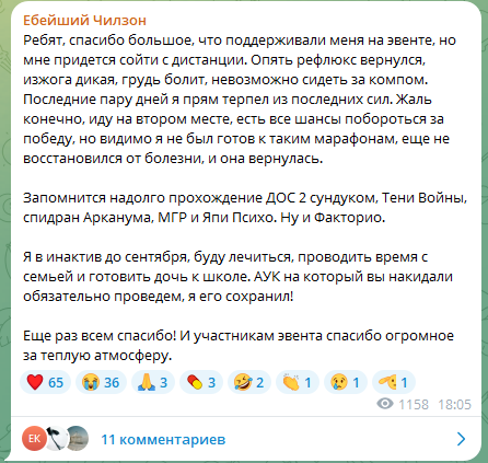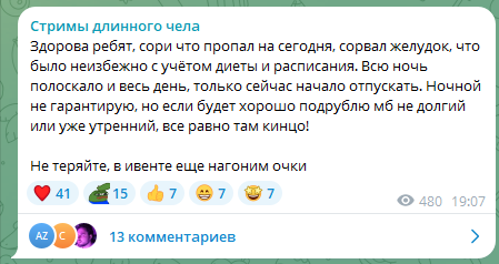 У Кубоеба опять изжога, рефлюкс аж стрим оффнул Меньше за компом надо сидеть и двигаться, спортом заниматься. Он один раз блять сходил в своих голубеньких шортах, руками помахал и думал наверное все спортсмен