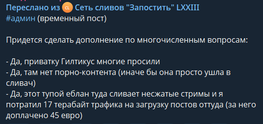 Приснилось нынче будто слили видос, где эта бывшая шаболда шмаравудуса стримит на твиче, там на фоне плешивец на кухне хлопочет, в фартуке бегает, ей чай приносит и все такое. И тут из душа выходит в кадр ещё один чел полуголый. Эта шалава орёт, мол, нет не заходи сюда, выйди из кадра. Клоун наш там смущённо в сторонке стоит лыбу давит как всегда. Ебарь спешит удалиться из кадра в другую комнату, но уже поздно, клипы наделали уже. Мои сны пророческие обычно