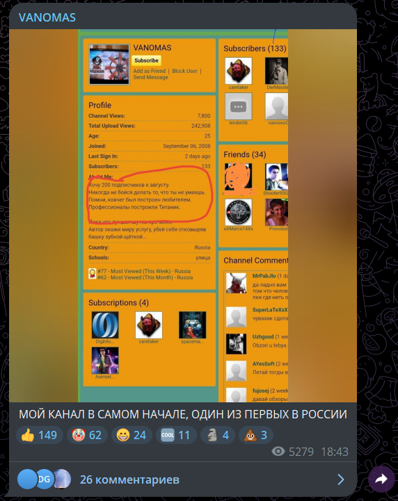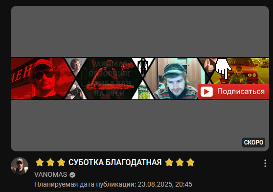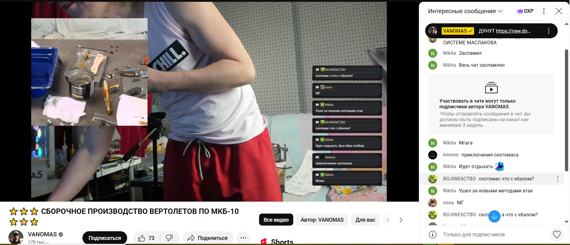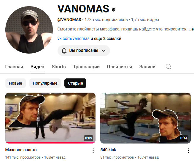Основные каналы:https://www.youtube.com/@VANOMAS— главный канал.https://www.youtube.com/@VanomasTrash— канал для менее важных видео.