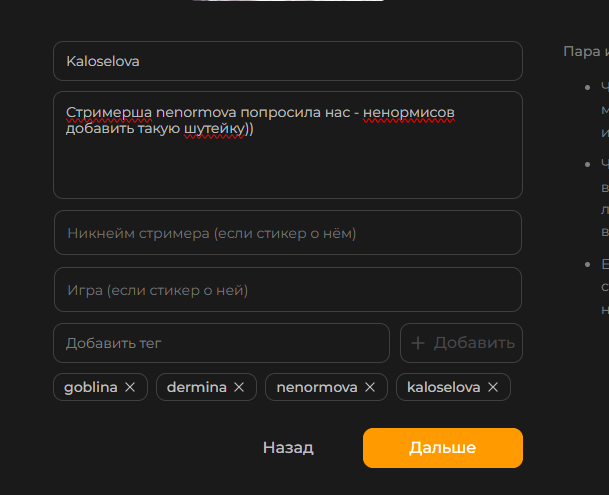 >>25069023 >>25069020 Плюс я хз как работают фильтры на этом сайте. При добавлении стикера там есть поле СТРИМЕР, и по логике там нужно писать nenormova, а если не написать, модер проверяющий ваш стикер сам допишет и возможно фильтр у Илюхи сработает даже на это