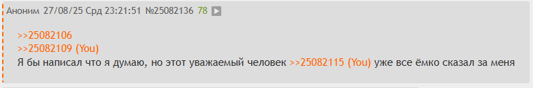 >>25082320 >вудуш недавно про него в положительном ключе говорил Вот это ближе к истине. Он же чмоня без мнения, что спонсор велит читать по бумажке, то он и молвит. У него по любому все не так однозначно, все максимально обтекаемо и нейтрально, как и у любого подобного чмошника