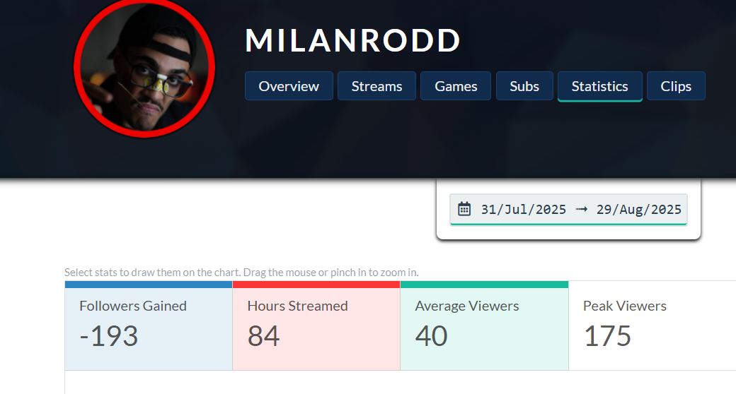 А помните негра с стримхат дианы? У него буквально весь канал изначально был накруткой. Вот его стата за год. Если брать чисто август - почти 200 человек прожали анфоллоу.