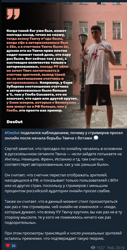 Там инфа проскочила что это только первый этап зачистки ботов от твича. То есть это ещё не все. Так что у стримерков скоро останется по 15-20 реальных зрителей когда всех ботов отсекут.