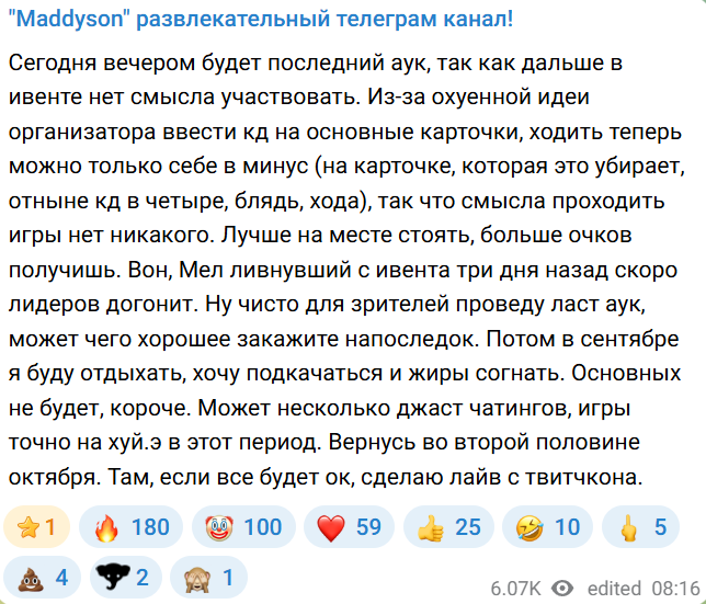 Мне одному кажутся последние вот эти ивенты паджита, чмаски - хуйней полной? Давайте будем уже честны. 9 из 10 победителей аука - духота скучная. Зрителей веселят и дают почву для обсуждений несколько видов игр: