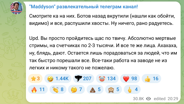 Онлайн у стримеров вернулся к прежним значениям — ранее показатель падал в 2–3 раза. Сейчас ситуация стабилизировалась.
