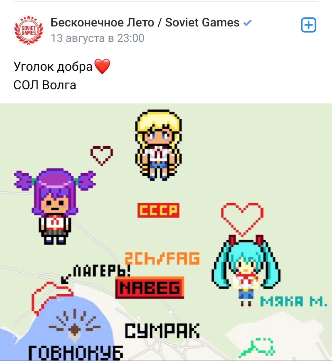 Также никаких упоминаний ряженых шаболд и стандартных пивонерских развлечений, завязанных на Лето. Развлекуха - стандартная, предоставляемая лагерем и похоже им же организующая. Нельзя исключить заезд их в частном порядке - но тут уже не они от Петухипстера бабки получать будут, а сами будут вынуждены платить, лол. Так сказать, ощутить на себе бытность фистуном, пусть и отчасти.