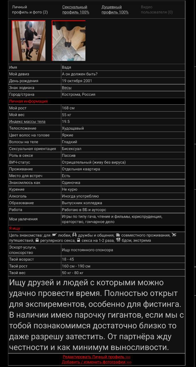 К слову, подумал тут. Раз он официально безработный - то походу реально стоит на онлике или в другой подобной клоаке его аккаунт поискать. Может так статься что в очко себе пробки ПВХ вставляет не только чтоб кончить, но и для заработка на камеру (это объясняет, откуда у него бабло - на фигурировавшие ранее 30к в месяц сейчас мало где проживёшь, и уж тем более не до чулок с дильдосинами будет).