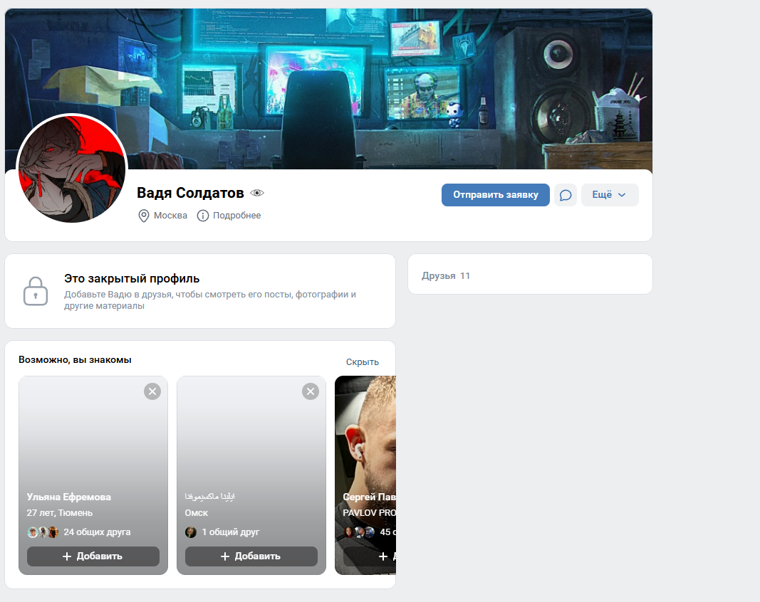 •На данный момент Вадя под предлогом борьбы за нравственность и против "порнографии" хотя сам выкладывал на странице своей группы откровенное ЦП за что его паблик отъехал на территории рф, а также является чулочником(данный тейк он не опровергнул, а лишь косвенно намекнул, что оно так и есть) катает заявы на не в чем не виноватых людей и абузит систему правосудия РФ. Также по неподтвержденным данным Блядя заказывал на кого-то из админов спортиков.