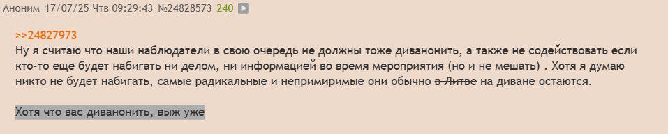 >>25106670 >>25106711 И ещё раз прояснб свою позицию. Цель наблюдаторской мисии была в том, чтобы НАБЛЮДАТЬ за отсутствием типичных фистоатрибутов на сходочке Бибы, а не долбиться с фистунами в дёсны. Как бы и побывать на этом недофисте, но без удовольствия, языком не работая, так, за щекой погонять. Жиробот с этим либо не справился, либо изначально ехал с другой целью. Алсо, реквестирую мнение НАБЛЮДАТОРОВ по поводу зис >>25100315, зис >>25101470, энд зис >>25103421