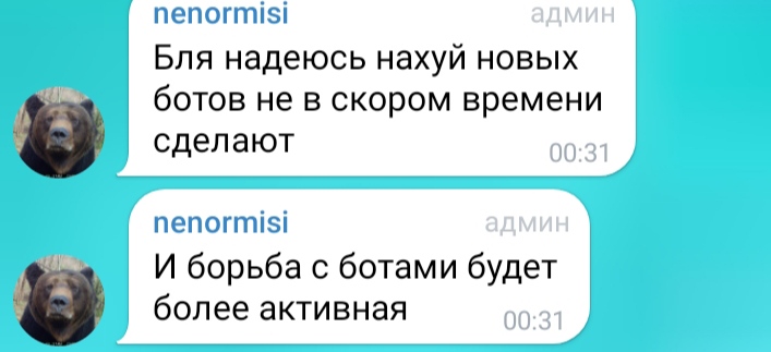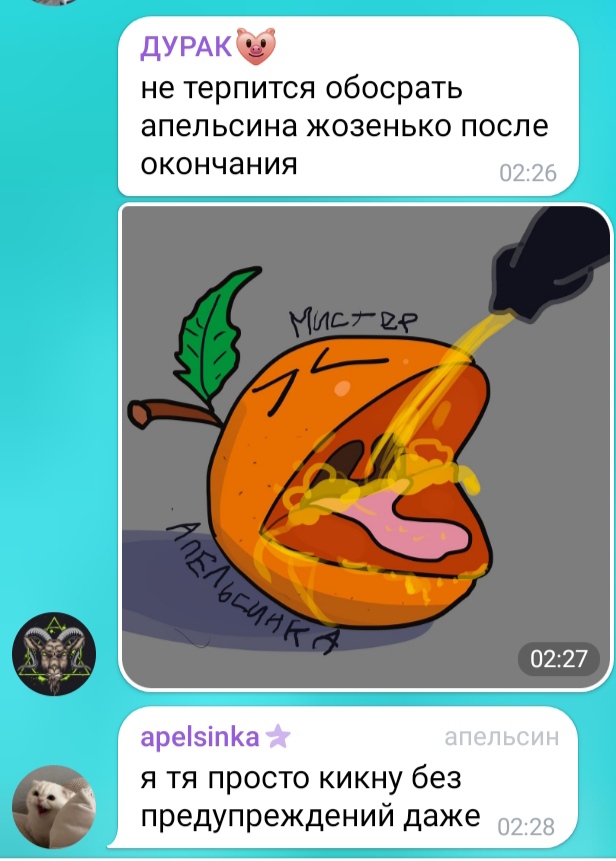 Апельсимпка всё старается, для Гали, под страхом бана в подсосах мэда, как у него получается я хз, под впн у меня сообщения не отправляются, сразу сервис распознает.