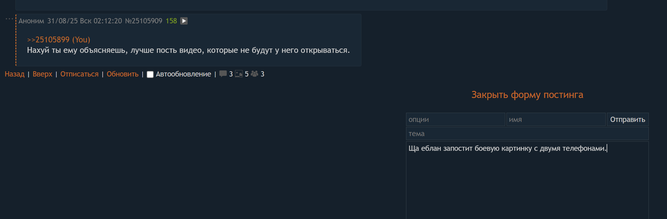 Собрался было подразнить накруткошизика, но чёт внезапно лень стало и я тупо скрыл всю нить с ответами. После еды как-то меньше хочется хуйнёй ненужной заниматься. Надо спать, наверное, идти, но как-то не хочется сразу на полный желудок, пусть переварится чутка.