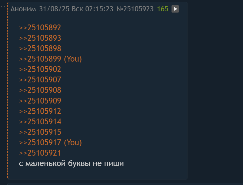 Для удачного самореплая наиболее выгодно стилистически писать всё с заглавной, ставить пробел после запятой, и писать всё в одну строку без переносов вне зависимости от длины поста (да, здесь есть долбоёбы которые пишут лесенкой по привычке из чата в дотке). Так называемый НПЦ-стиль.