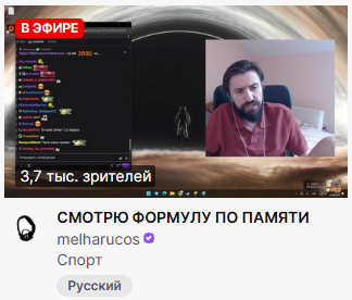 ВНИМАНИЕ! Panel Content Дорогие друзья! Я понимаю, что многие из вас привыкли смотреть стримы на twitch, но обстоятельства сложились так, что я решил двигаться дальше и сменить стриминговый сервис. Twitch замечательное место, но другая платформа предлагает более выгодные условия при менее душных правилах, так что выбор был очевиден - стримы теперь будут в другом месте. По правилам я не могу давать ссылку на эту платформу и свой канал там, так что вам придется найти все самим. 2025 будет богат на стримы, так что ищите, переходите и подписывайтесь. А сюда мы обязательно вернемся!