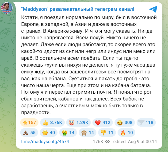 я чет думал что мадье нажрется, будет какой то замес, куча стримлеров в дисорде, а на деле сидит престарелый хуй в костюме затирает про советскую ебалду