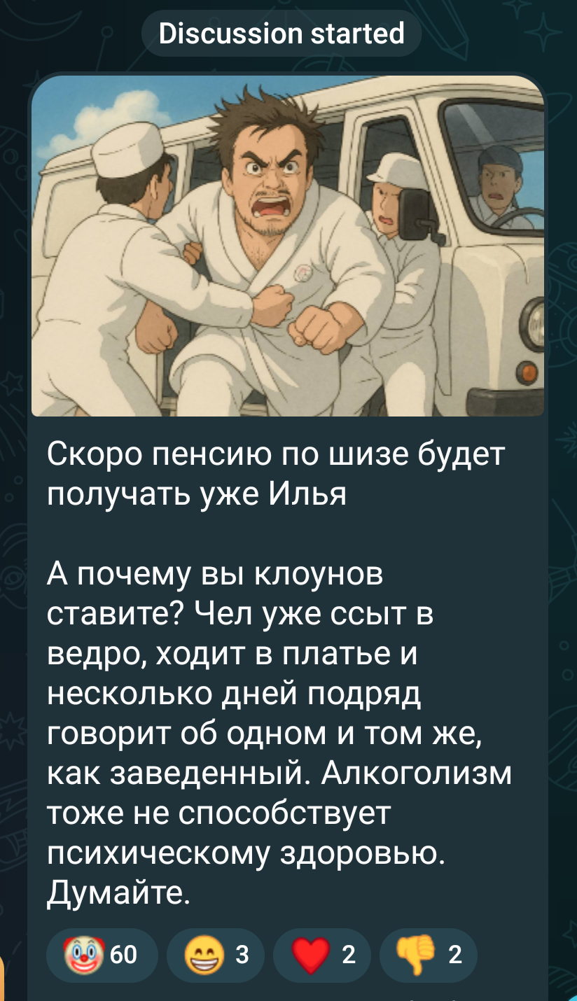 >>25115280 Да уже главное, что ты даже отрицать не попытался, что ты ебаный ботяра от Дианочки, или хотя бы в непонятки вдариться. А это уже палево пиздец. Вы такие тупые, и так тупо палитесь уже неделю. Ладно хоть откровенные пасты перестали кидать, а то совсем уже пиздец был.