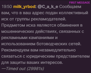 Пришла разнарядочка форсить что на кике тоже крутят, только что братишкин обсуждал это на стриме и показывал выдачу поиска что на кик тоже можно купить ботов, Ховану зарядили 18к ботов как раз. Думаю планировали Илюхе, но он откисает после пьянки. Люди работают так сказать.