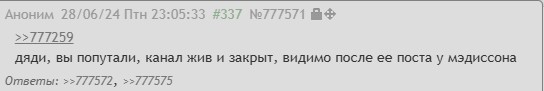 А что за пост у Мэдисона был в июне 24 про эту пизду, которая у него вчера на стриме была? Может глянуть кто? И как он вообще с ней сконнектился вчера.