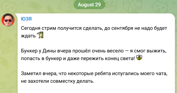 Давно у Юзи не было аутичных стримов, где он смотрит игровые выставки, оффая звук и включая музыку. Давно он не сидел пару часов на стриме, смотря на точку. Неужели его жена сказала, что он совсем охуел, раз в тридцать один год не имеет своего дома?