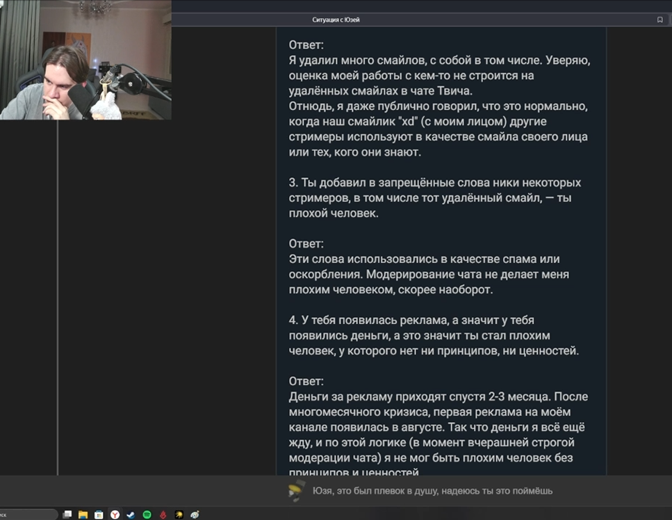 Ты имеешь в виду когда Терпишкин на стриме опустил прилюдно Юзю назвав его чат долбоебами? После перезапустил поток чтобы выпиздить его из функционала общего чата?