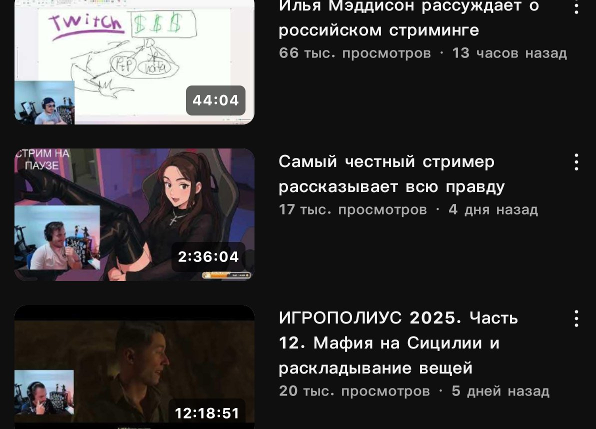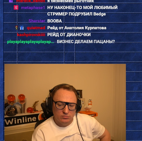 Это вот реальные чемодашки ща были с реальными бабами и жёнами? Я всегда думал это рофл, что типа сидим с телкой и смотрим твой стрим, друзья тоже смотрят твои стримы, на работе показываю твои стримы. Это реально наху? Эсли я скажу своему окружению что я смотрю чмодье, то меня отхуярят и обоссут нах. Это же реально постыдно кому-то вообще в принципе какие угодно стримы показывать и рассказывать, это буквально досуг для отщепенцев, я в основном слушаю стримы в наушнике на фоне, положив телефон вниз экраном чтобы никто не узнал и уж точно никому об этом не расскажу, иначе порядочные и уважаемые люди не поймут.