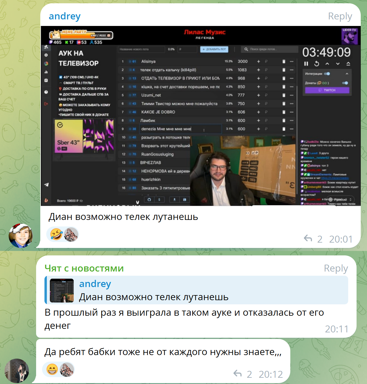 Пост в тг в 21:00 Ахаха ребят вы реально думали, что меня хоть как-то задевают высеры особо отбитых долбоебов в чате? Ну вы даете. Через полчаса подруб с секретным гостем, будет нечто грандиозное! 20я минута невнятного оправдательного мычания и чтения сообщений пидорским голоском Просто навыписывал хуйни, так называемого нытинга, чтобы сильно не расслаблялись, хотелось посмотреть реакцию самых конченых гнилых дебилов, которым не место на канале. Отныне их сообщения будут усиленно модерироваться, а авторы забыты в перманентном небытие. Ну а сейчас тот самый долгожданный секретный гость! Да да, не удивляйтесь, это Мариночка. Знаю, вы давно по ней соскучились, но и это еще не все! Кринжовые корчи лысеющей нпс Марин ты как обычно, ну ладно ладно ребят, все, девочку не обижаем, ммокей? Лучше закиньте деньжат на аук, а то чего колесо пустое уже полвоину таймера, я ради нищего аука чтоли из "депры" вышел? Мга! Последние две минуты аука Ребят ну какой бан Марины, лучше бы я вообще не подрубал. Вы не забыли? Нас еще ждет бонус! Уже как 5 минут 00:00 на таймере и мямленья про то, что девочек обижать не нужно вперемешку с жалобай на отсутствие донатов Все, заебали, хотел с вами по-хорошему, но вижу, что не получается, не хотите бонус, не надо. Созвон с ноющей орущей бабкой, который и являлся тем самым бонусом, но тсс Сейчас пойдем в ПАБГ с Недотепой, хоть немного развеемся, Марина почитает чат, а вы посидите подумайте, на что лучше задонатить. Аук с двумя вариками, один из которых это бан "Чмарины" я не буду! Схожая сценка как со вчерашним казахом, только под ор визгливой бабушки и последующий оф